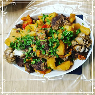 רכיבים: בשר - 1 ק"ג בשר בקר (אוסובוקו) + 1 ק"ג טלה (רצוי מהרגל האחורית) שורשים: תפוח אדמה - 1.5 ק"ג גזר - 1 ק"ג בצל - 2 ראשים שום - 3 ראשים ירקות נוספים: (לעסיסיות) גמבה - 4 יח'. עגבניות - 4 יח'. מתכון: לבישול אשתמש בקלחת אפגנית , אפשר גם בסיר לחץ , אבל אם אין לא אחד ולא השני, גם בסיר גריל, פשוט זה ייקח קצת יותר זמן. 1. קודם כל מטגנים את הטלה במחבת עד להזהבה. 2. אנחנו מסירים את הטלה ומטגנים את הבקר באותה מחבת. 3. בינתיים חותכים את הבצל לנוצות ושולחים אותו לקלחת אפגנית משומנת קלות, השכבה הראשונה. 4. הניחו את הטלה המטוגן על הבצל ולאחר מכן את בשר הבקר המטוגן. 5. בעקבות הבשר ילך גזר, קלוף וקצוץ גס. 6. תפוחי האדמה הקלופים וחותכים אותם לרבעים נניח על הגזר. 7. הבא בתור גמבה קצוצה (רצועות) 8. אחרי הגמבה נכניס 3 ראשי שום (שלם) 9. מכסים הכל בעגבניות חתוכות לפלחים. 10. גמבה, בצל ועגבניות יתנו מספיק מיץ, אז לאחר שנתבלן לפי הטעמכם, סוגרים את המכסה ושולחים לאש למשך שעה. חשוב מאוד לבדוק את השסתומים בקלחת אפגנית לפני סגירתה. 11. לאחר שעה, משחררים את כל האדים, פותחים בזהירות את המכסה ומניחים את הצלי המוגמר על כלי ההגשה. מקשטים בעשבי תיבול לפי הטעמכם ומגישים לשולחן. בתאבון חברים, המנה הזו לא תשאיר אף אחד אדיש, תאמינו לי. אני אשמח לקרוא את ההערות שלך לאחר שתבשל את המנה הזו. אתה יכול גם לצפות במנות שלי בערוץ YouTube שלי